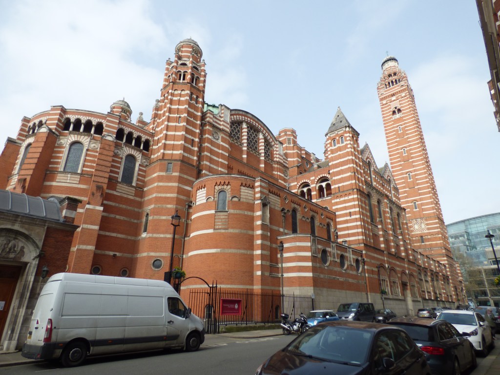 A walk over Vauxhall Bridge and it’s not long before you come to Victoria and Westminster. I was out to see a sculpture just called Wind Sculpture that I’d come across online. Firstly, I came to the beautiful Westminster Cathedral. Some years ago I visited and went up to the top of the tower.